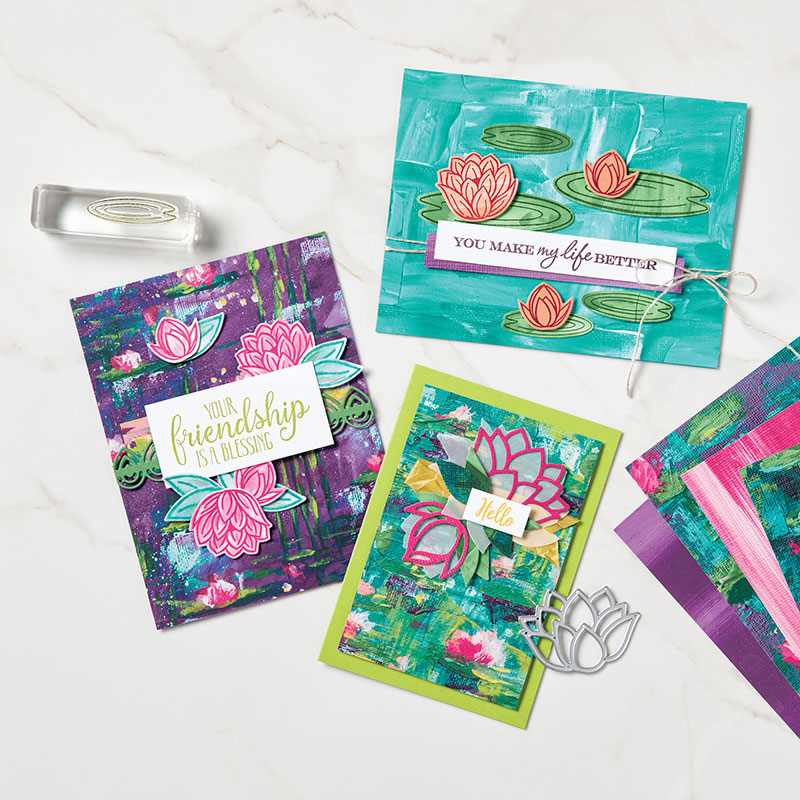 The bright and colorful 12" x 12" Lily Impressions Designer Paper coordinates beautifully with the Lovely Lily Pad stamp set for so many occasions!